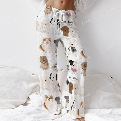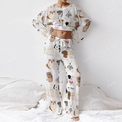Colordate Women's Dog Print Long Sleeve Cotton Homewear Set