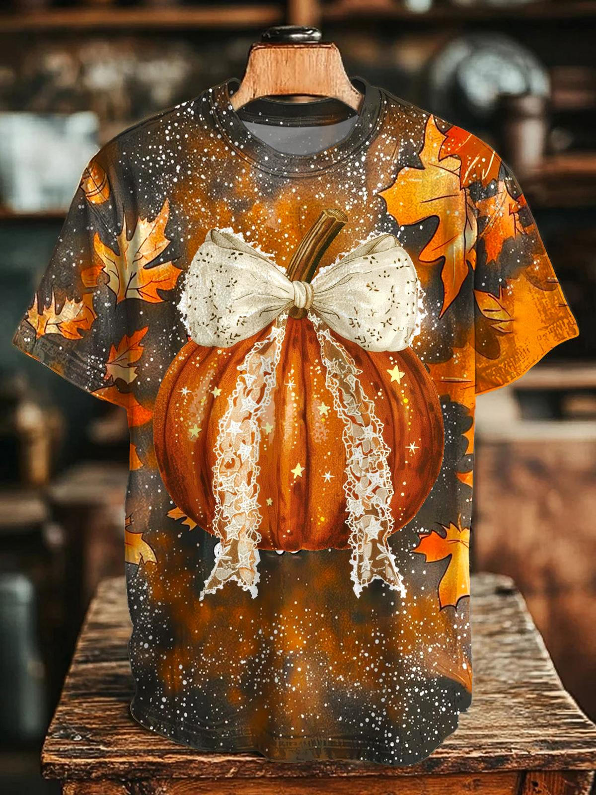 Autumn Pumpkin Bow Printed Crew Neck T-shirt