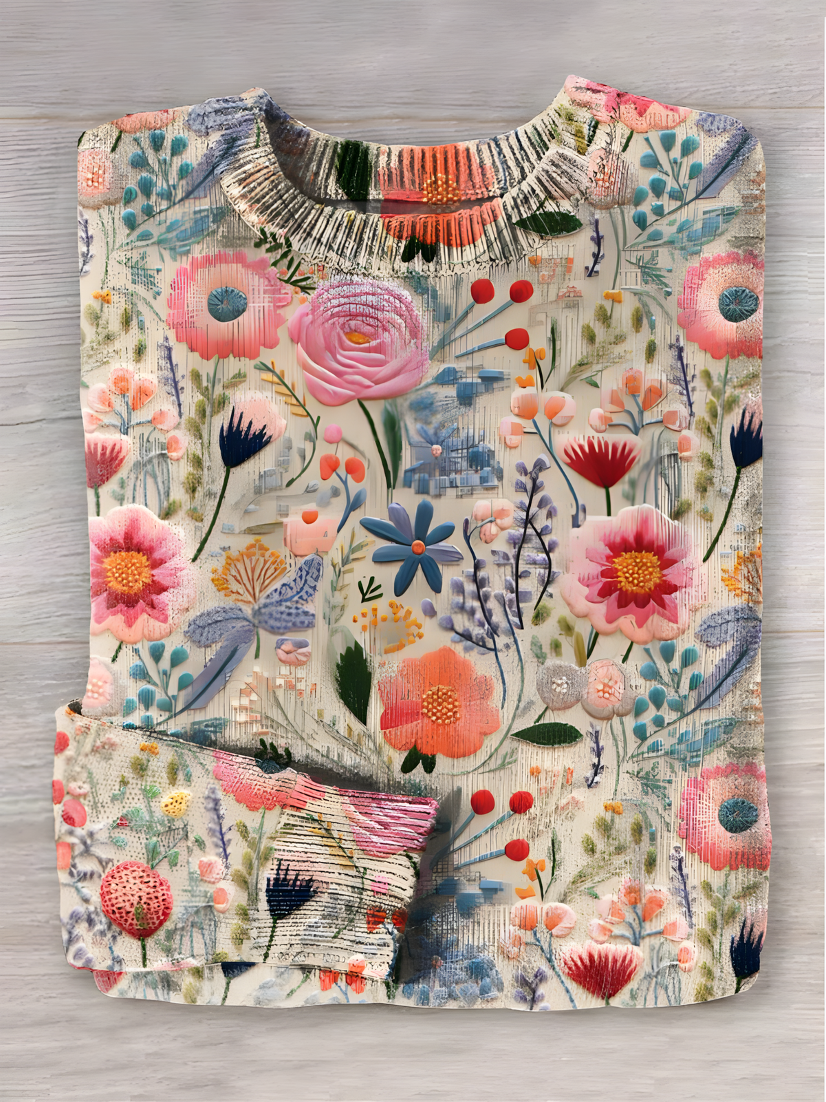 Breast Cancer Awareness Flora Art Print Casual Crew Neck Pullover Sweater