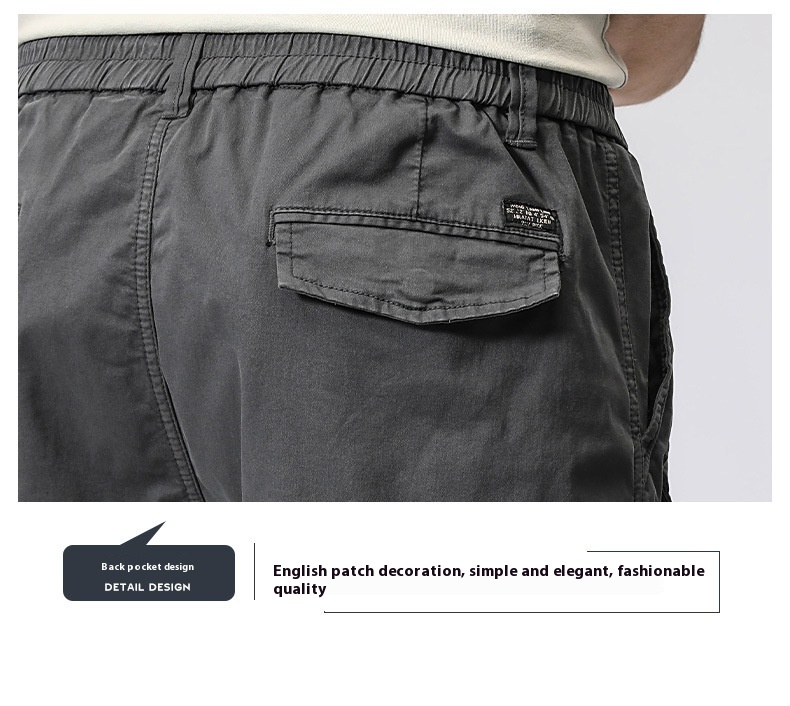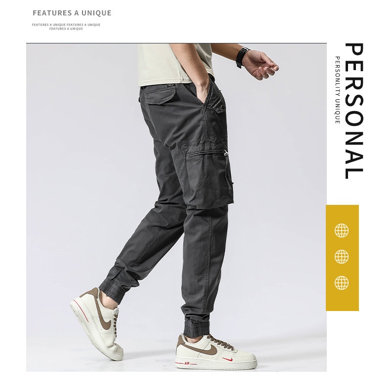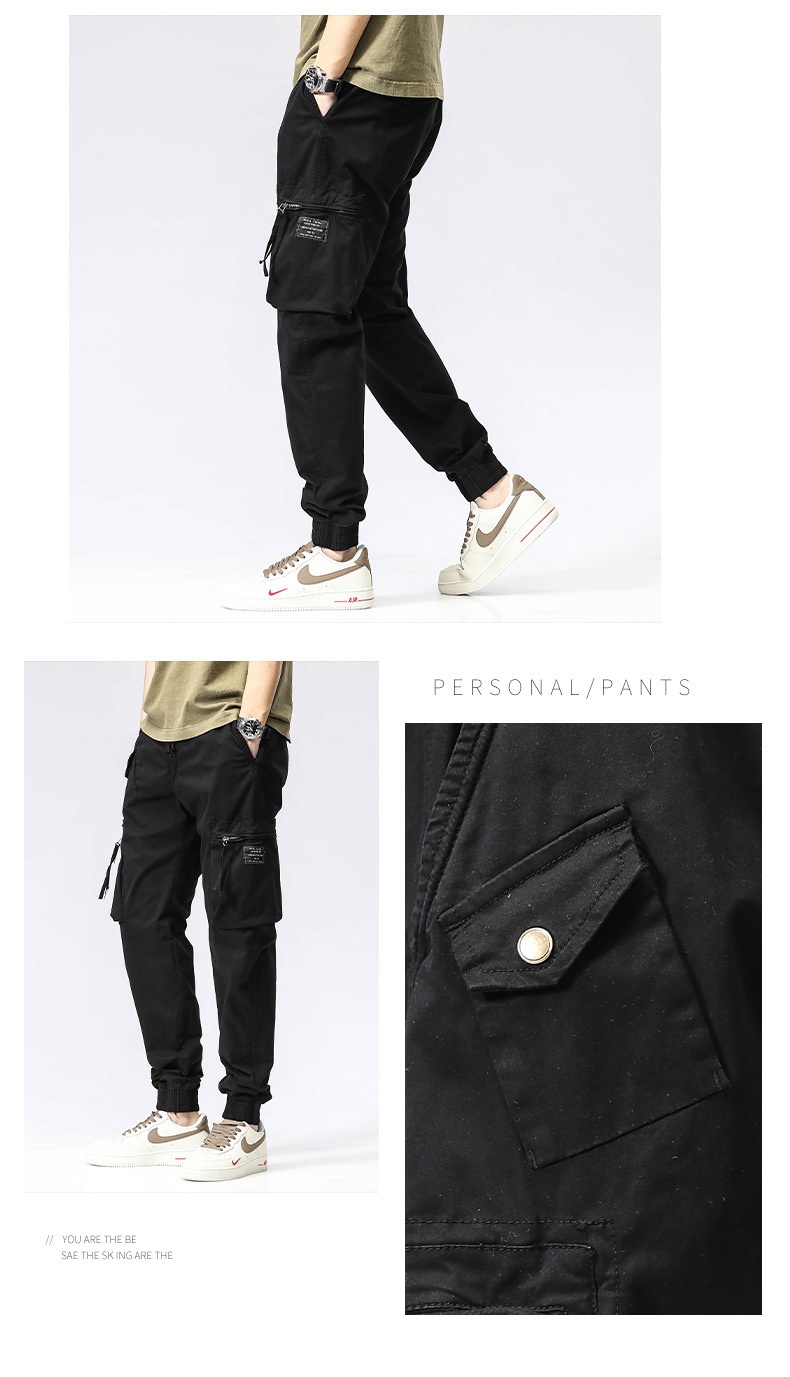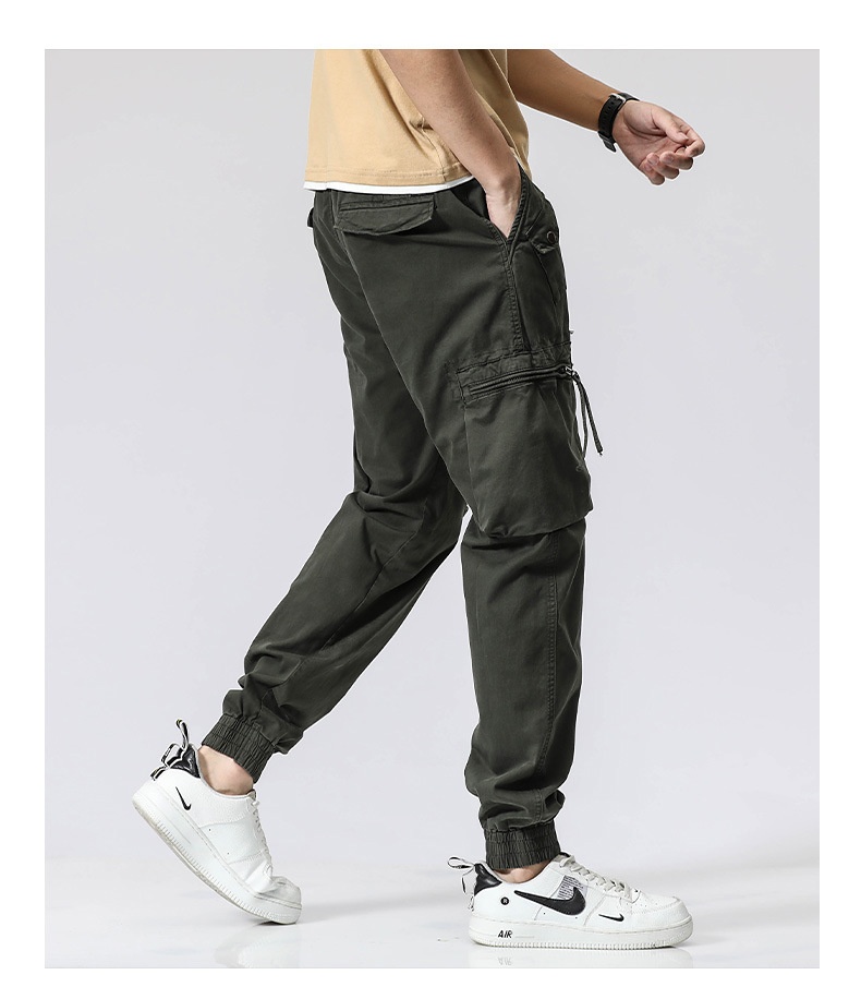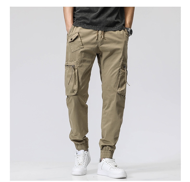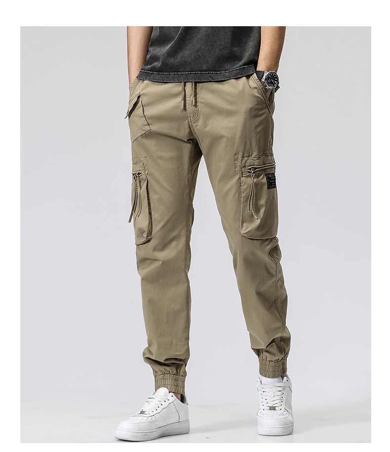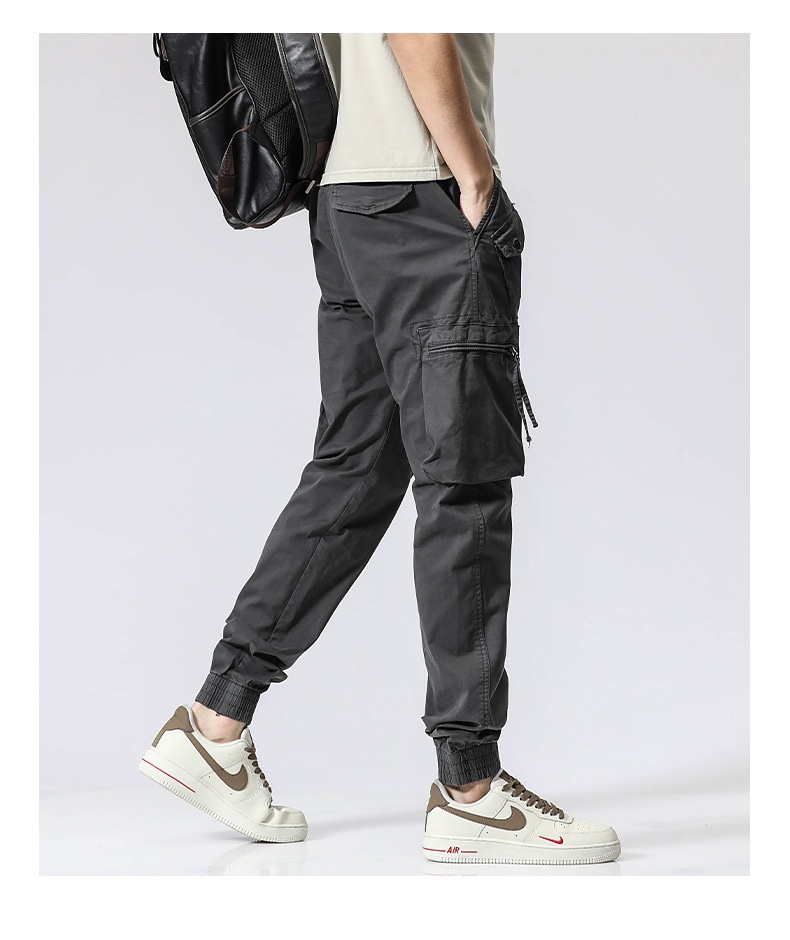Casual Pants Trendy Brand Elastic Waist Men's Youth Simple Pure Cotton Multi-pocket Work Pants Trousers Ankle-tied