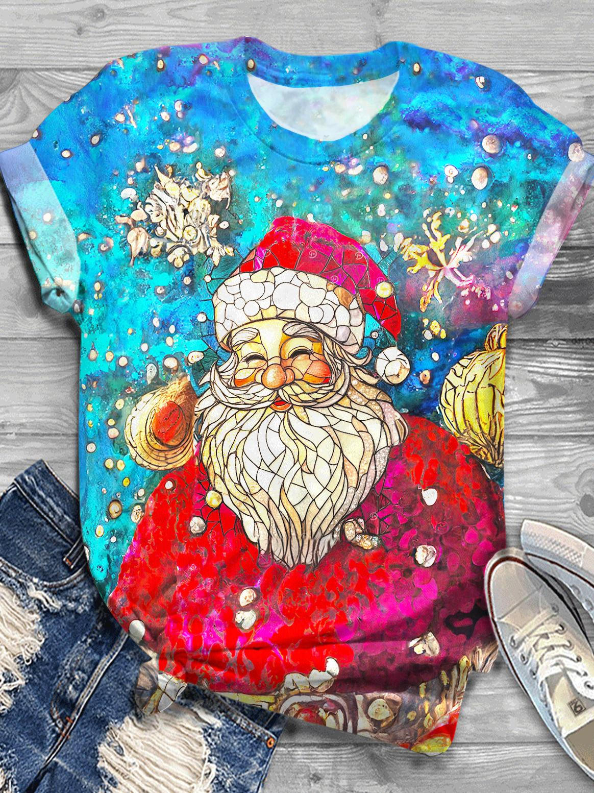 Christmas Santa Claus Printed Crew Neck T-shirt
