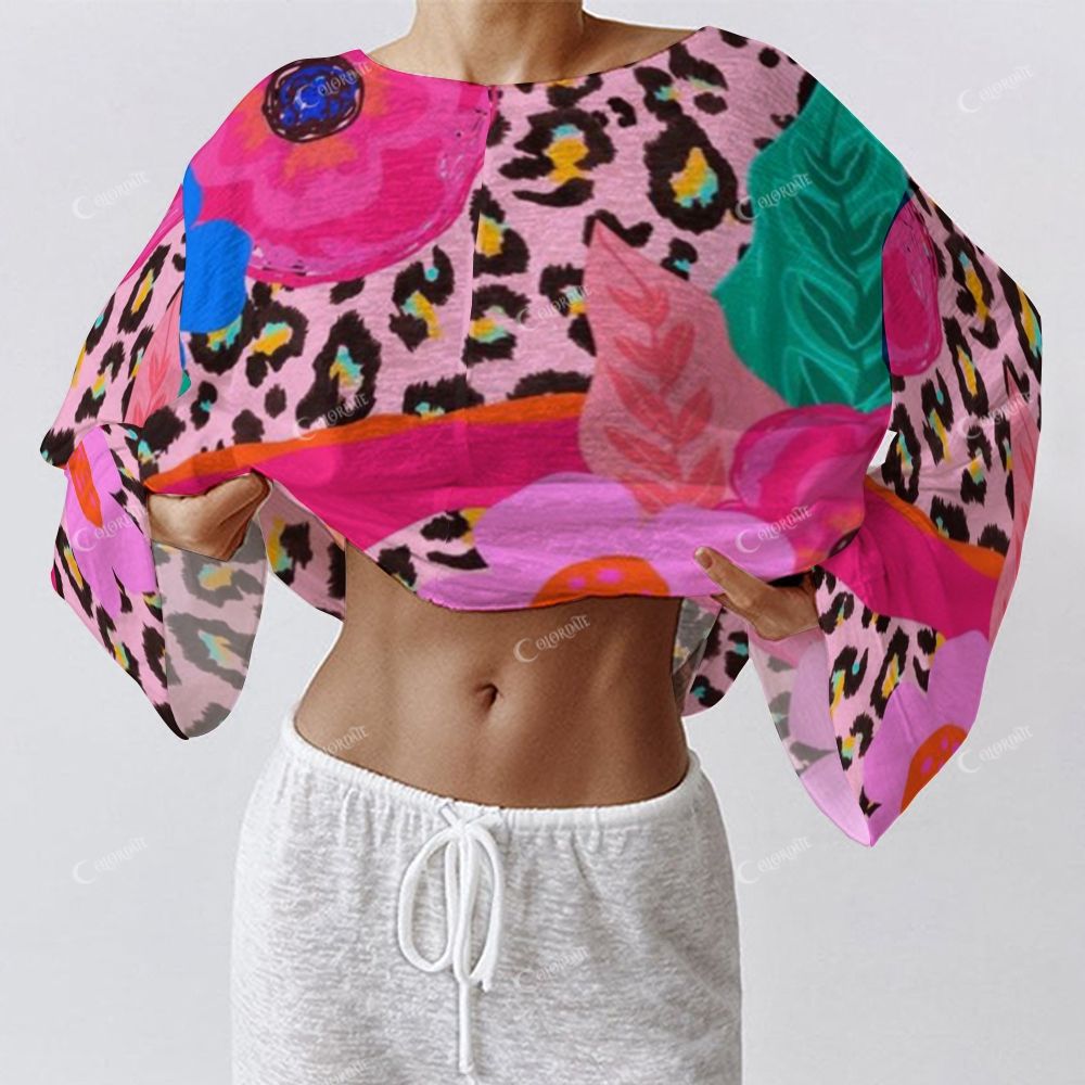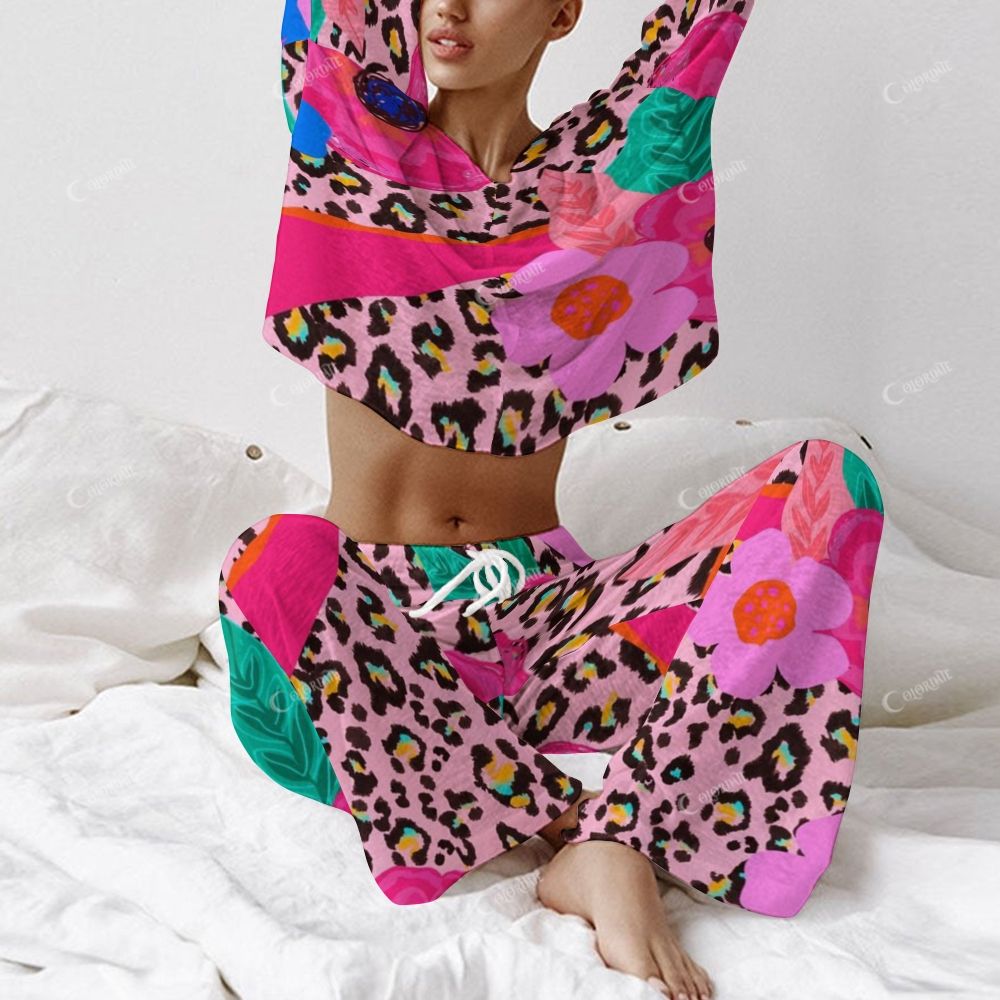 Colordate Women's Floral And Leopard Print Long Sleeve Cotton Homewear Set