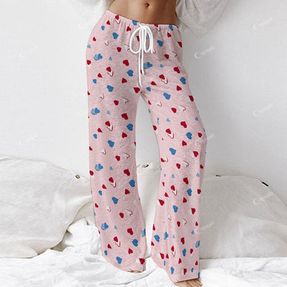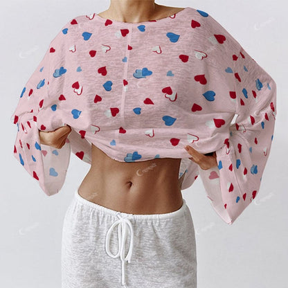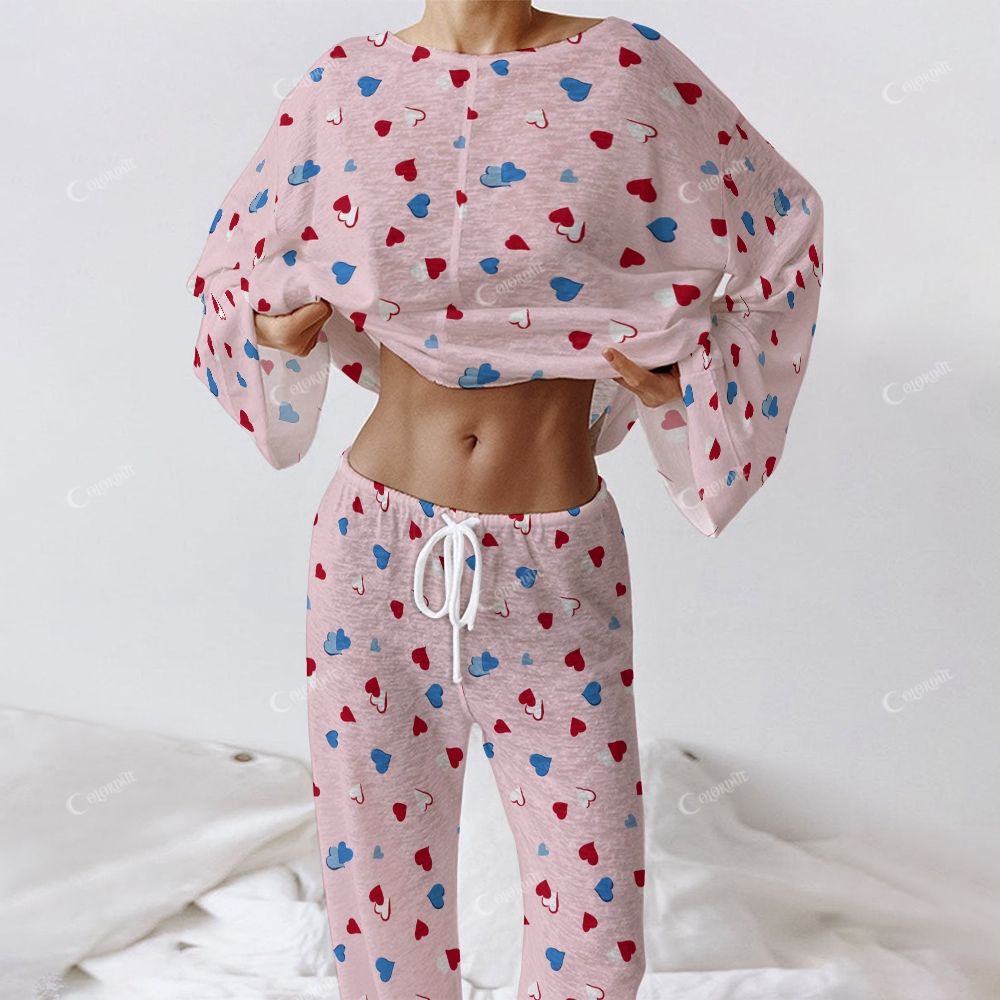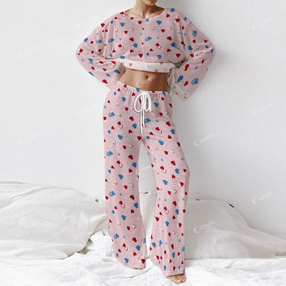 Colordate Women's Heart Print Long Sleeve Cotton Homewear Set