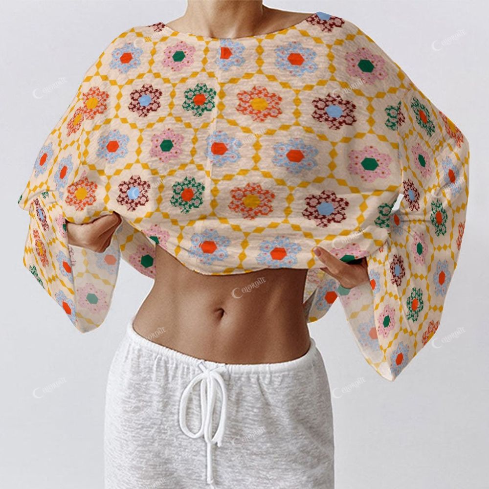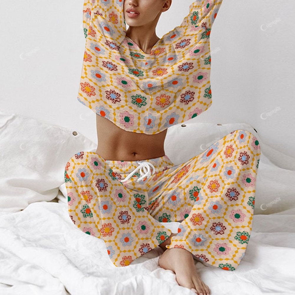 Colordate Women's Pattern Printing Long Sleeve Cotton Homewear Set