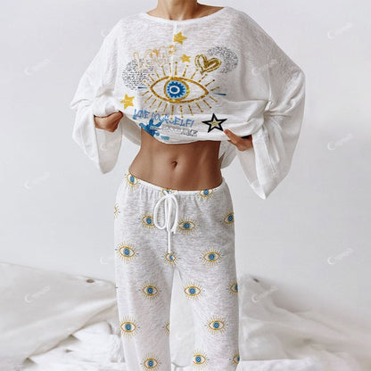 Colordate Women's Stars And Blue Eyes Long Sleeve Cotton Homewear Set