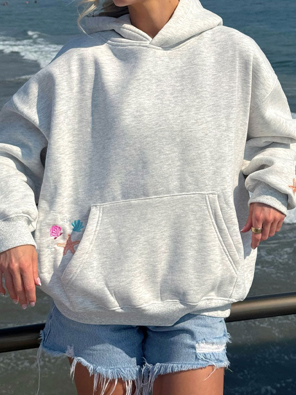 Crew neck embroided hoodie