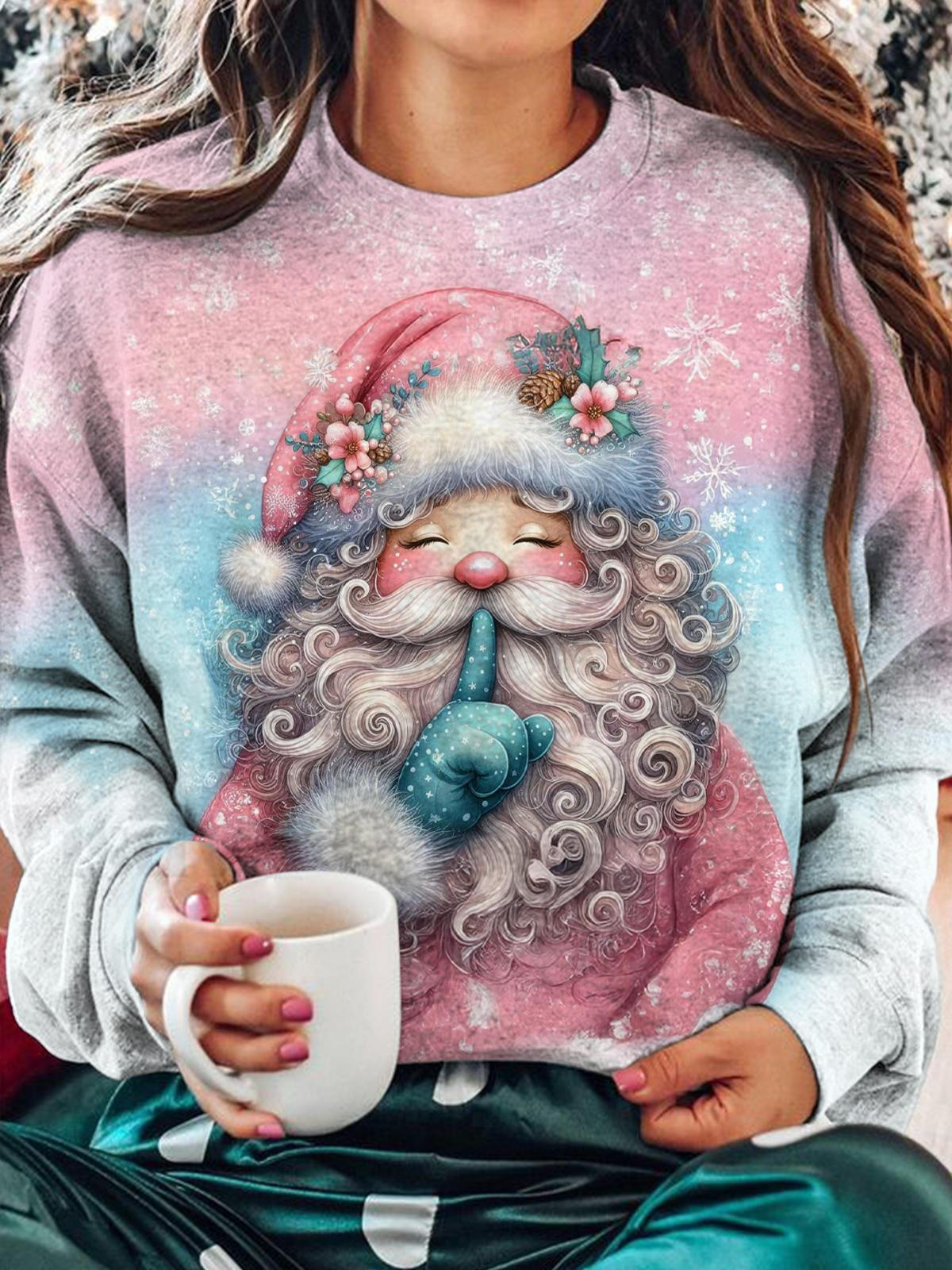 Cute And Funny Santa Claus Printed Long Sleeve Casual Top