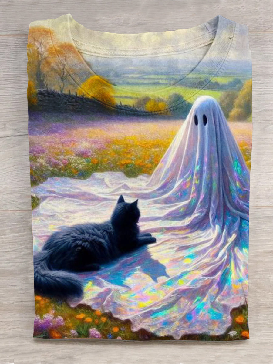 Distressed Magic Halloween Cute Ghost Print T-shirt