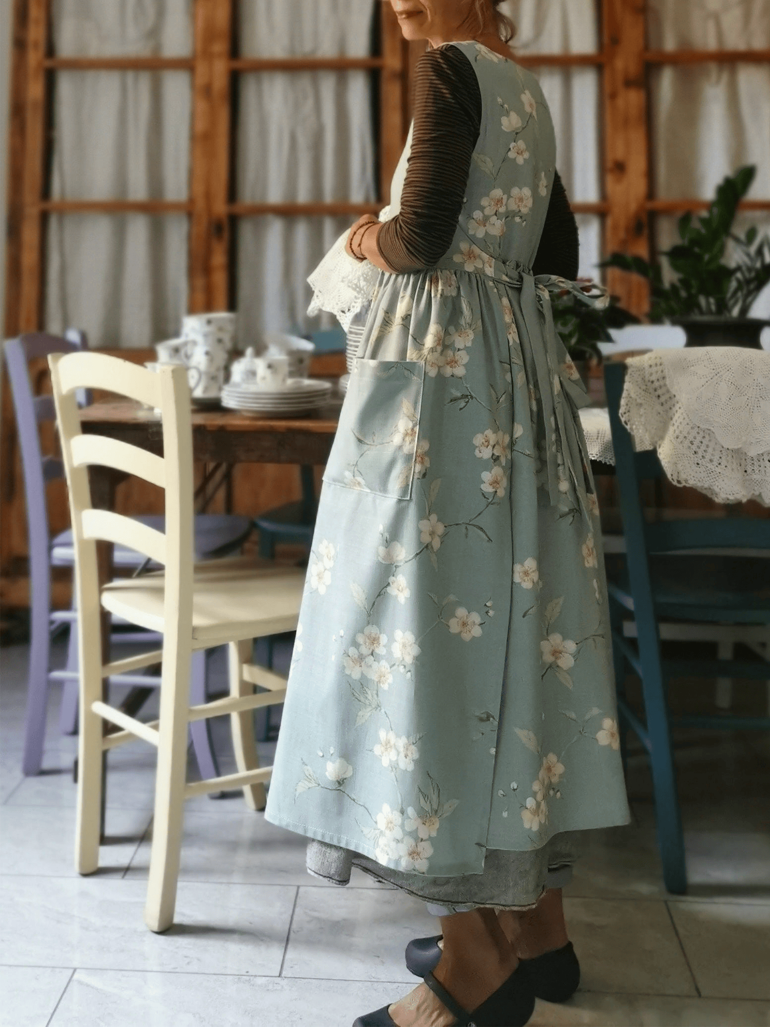 This Vintage Light Blue Floral Apron combines classic elegance with practical functionality, featuring a sophisticated light blue base adorned with delicate floral patterns that evoke timeless charm and refinement. Meticulously crafted with attention to detail, this apron offers comprehensive coverage and protection while maintaining a flattering silhouette that complements any kitchen attire. The vintage-inspired design seamlessly blends traditional aesthetics with modern durability, making it an ideal choice for both everyday cooking tasks and special culinary occasions. Constructed from high-quality materials, this apron provides excellent resistance to stains and spills while ensuring comfortable wear during extended cooking sessions. The adjustable neck strap and waist ties accommodate various body types, delivering a secure and customizable fit that enhances both comfort and mobility. Perfect for home cooks, professional chefs, or anyone who appreciates the intersection of style and functionality, this apron transforms ordinary kitchen work into an elevated culinary experience. The sophisticated floral motif adds a touch of feminine grace to any cooking environment, while the practical design features ensure optimal performance in demanding kitchen conditions. Whether preparing family meals, hosting dinner parties, or engaging in elaborate baking projects, this Vintage Light Blue Floral Apron serves as both protective workwear and a stylish kitchen accessory that reflects discerning taste and appreciation for quality craftsmanship.