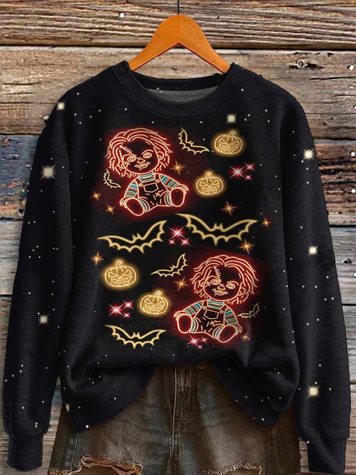 Halloween Neon Print Long Sleeve Casual Top