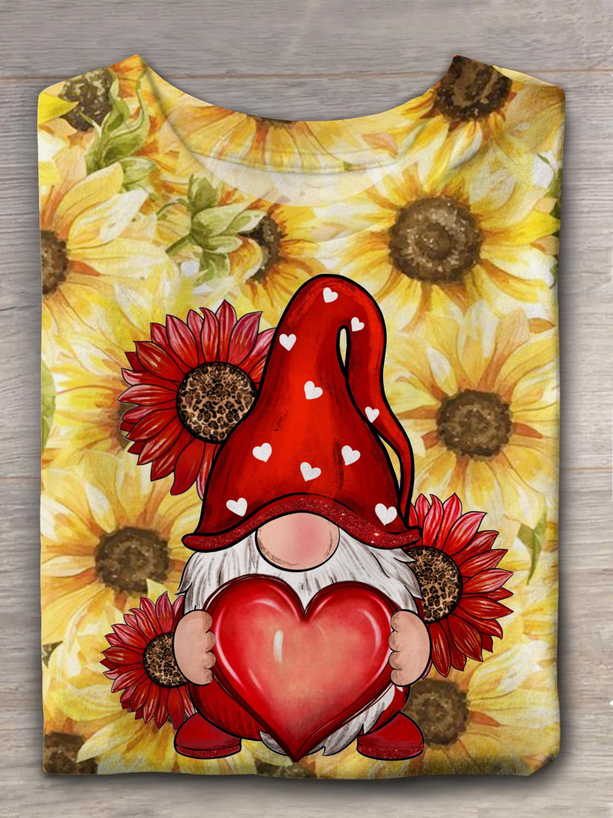 Sunflowe Valentine Gnome Printed Crew Neck T-shirt