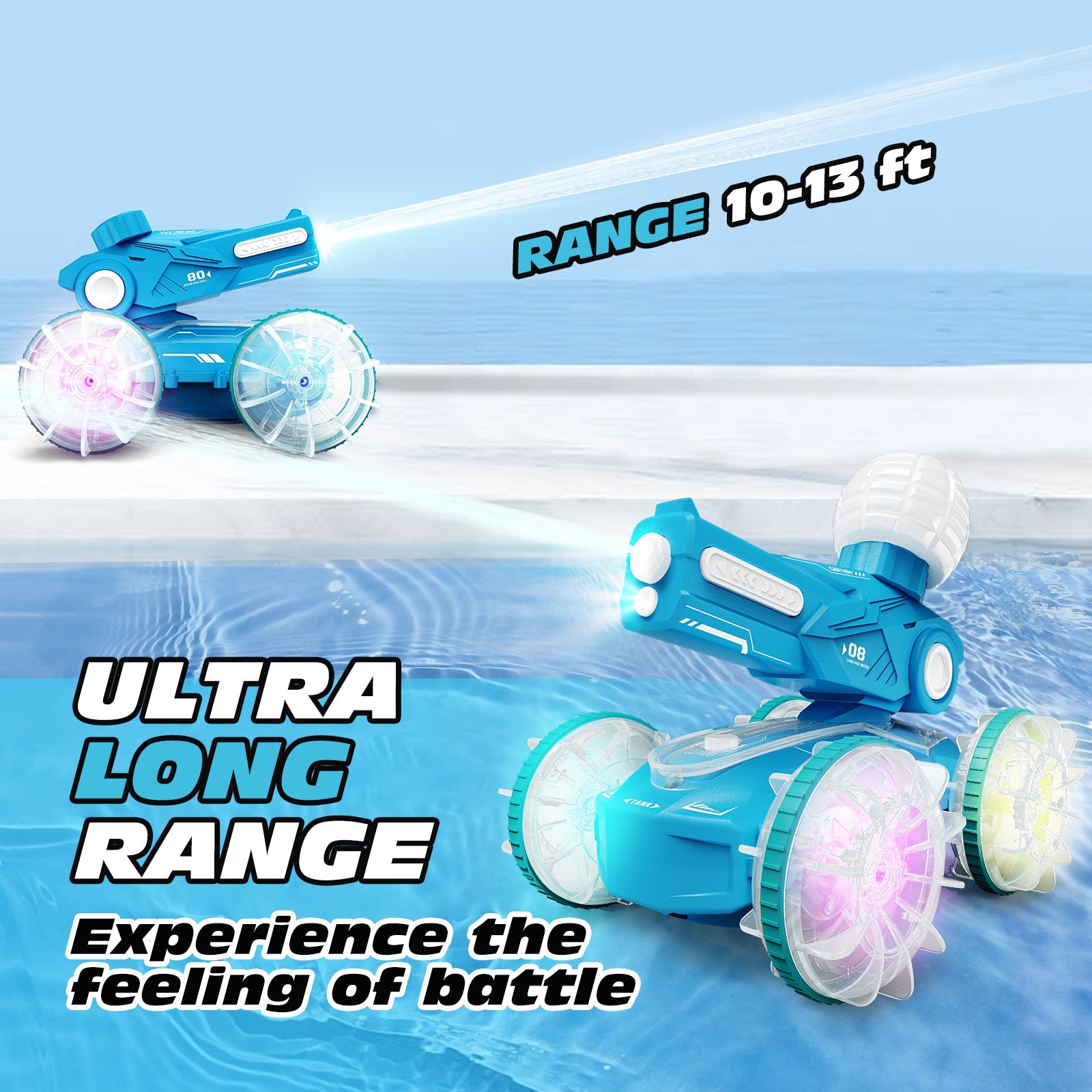 [Upgraded Waterproof Remote Control]: Dive into endless water fun without worries! Our amphibious remote control car boasts a waterproof body and remote control, ensuring protection against water damage. Enjoy seamless control and endless fun, whether on land or in water.