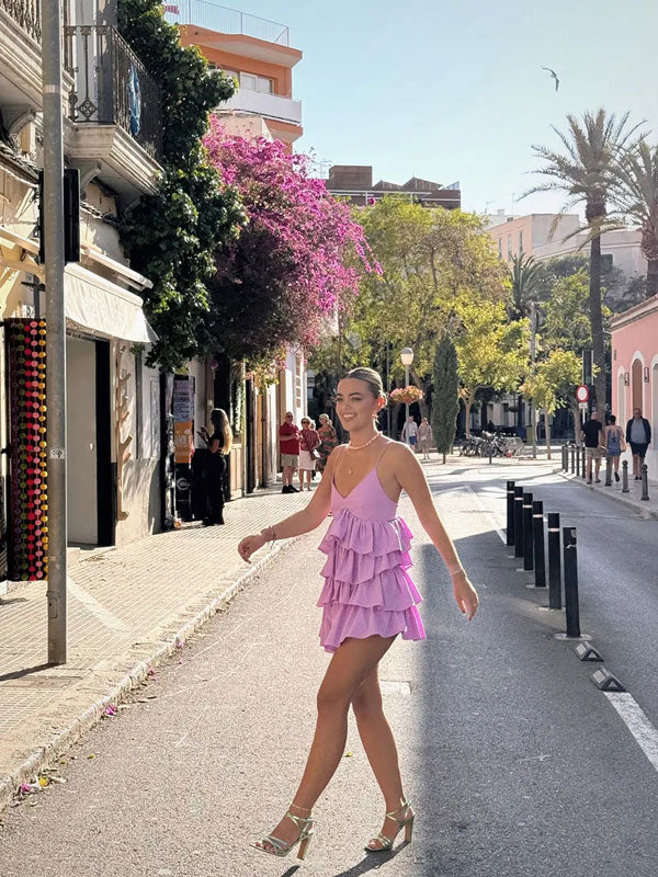 Thin straps tiered mini dress
