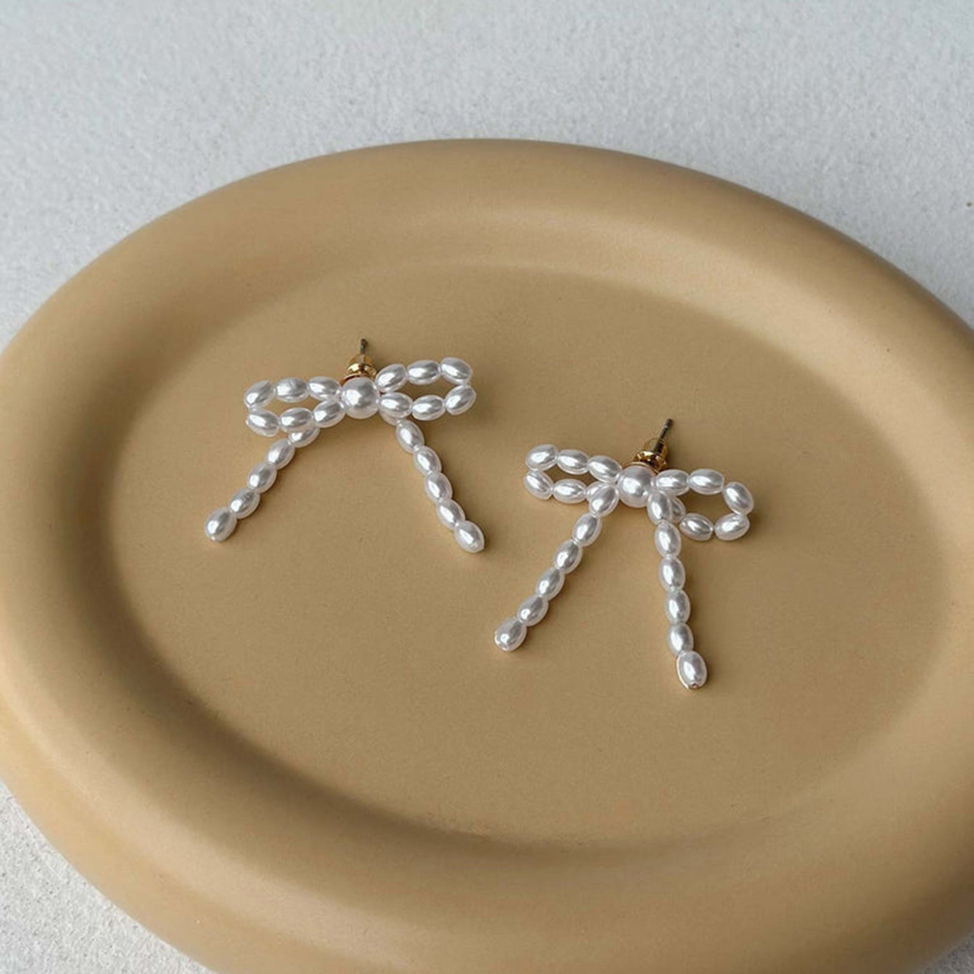 Trendy Retro Pearl Bow Earrings Popular Earrings For Women