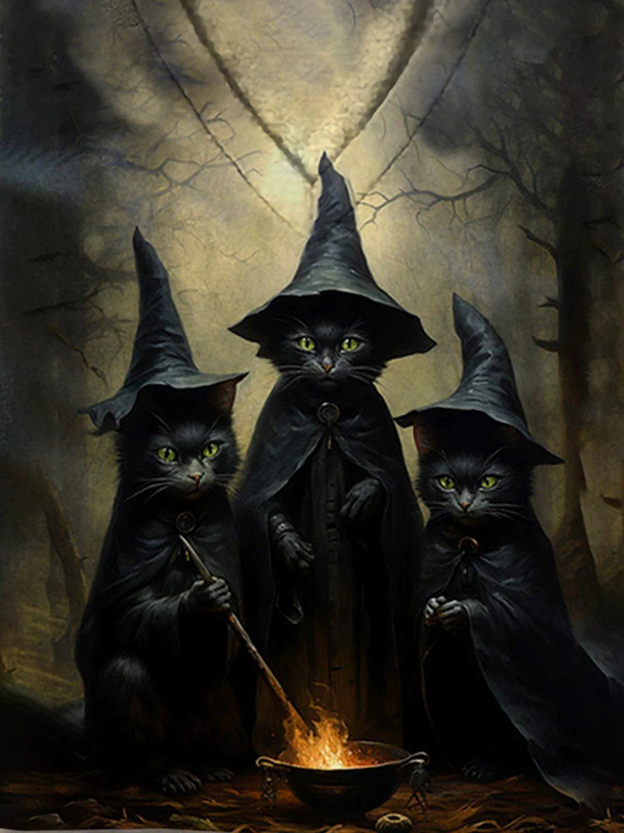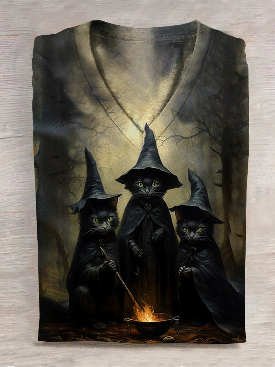 Unisex Halloween Cat Art Print Casual V-Neck T-Shirt
