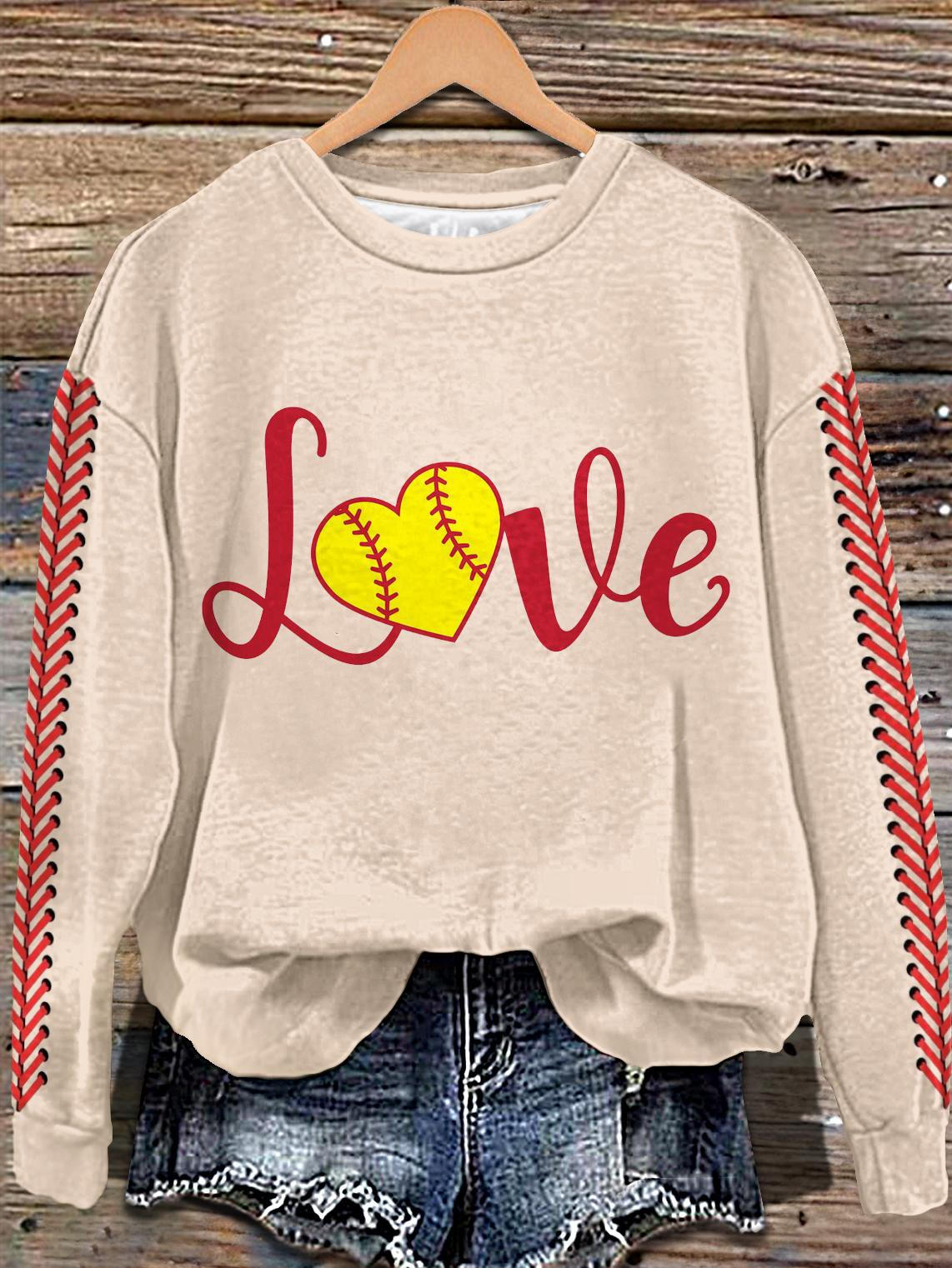 Vintage Valentine's Day Baseball Print Long Sleeve Casual Top