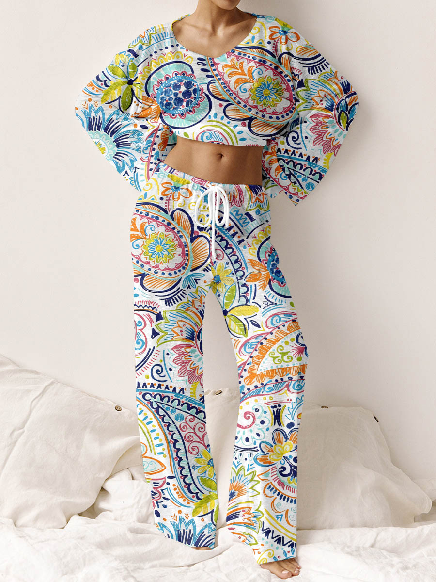 Women's Bohemian Art Print Long Sleeve Pajama Set