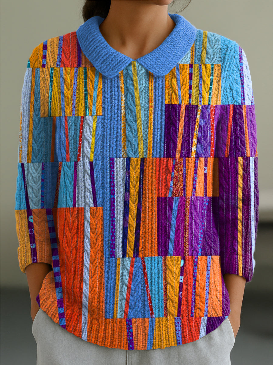 Women's Casual Peter Pan Collar 3/4 Sleeve Sweater