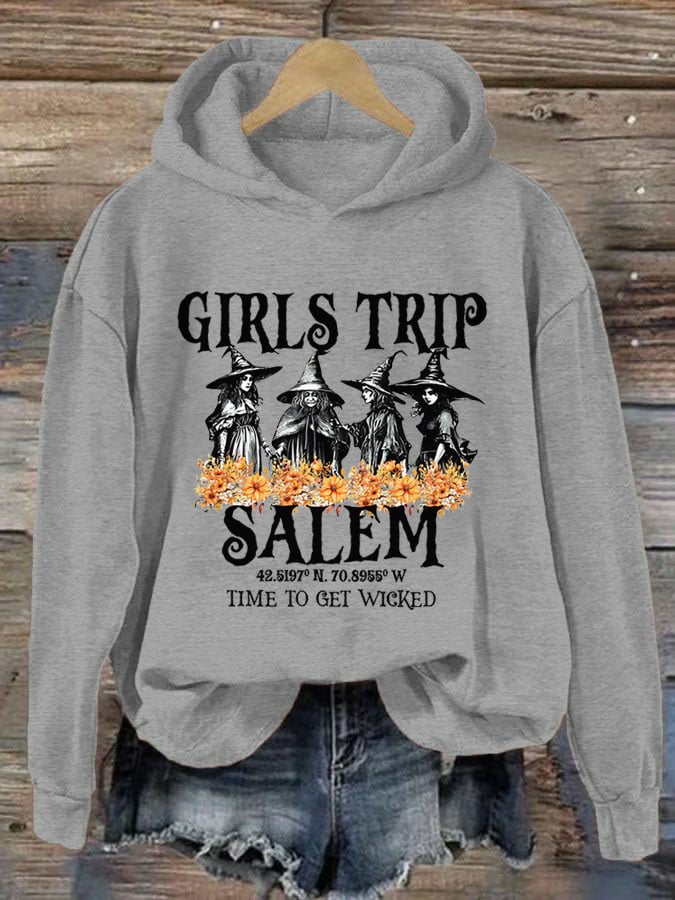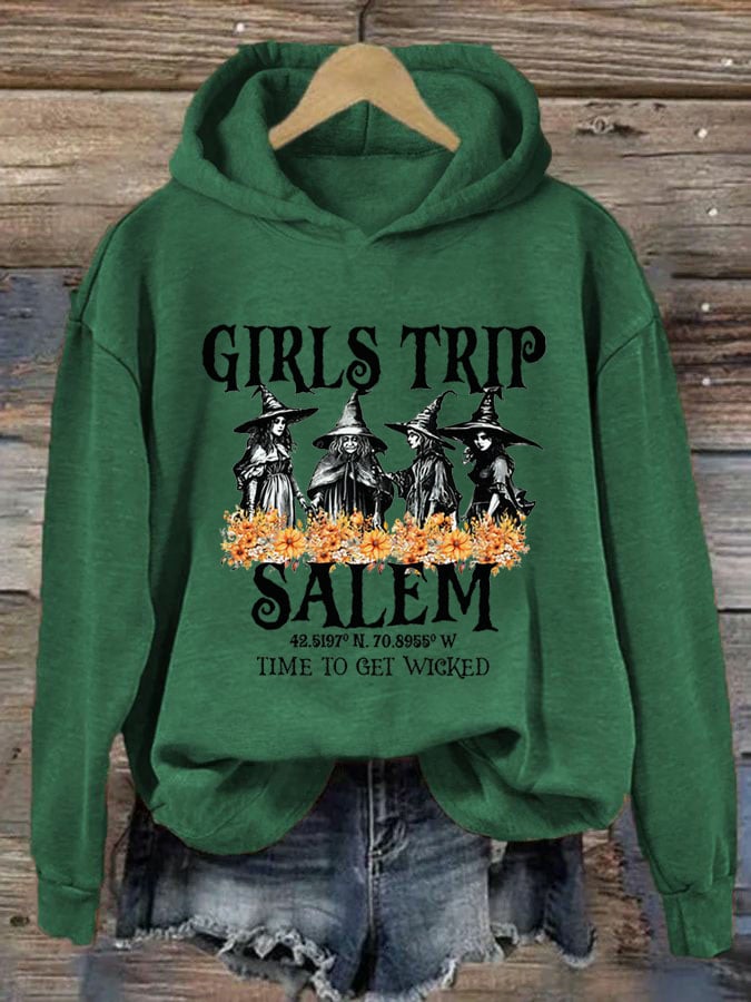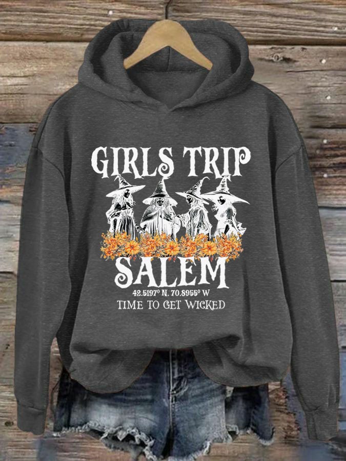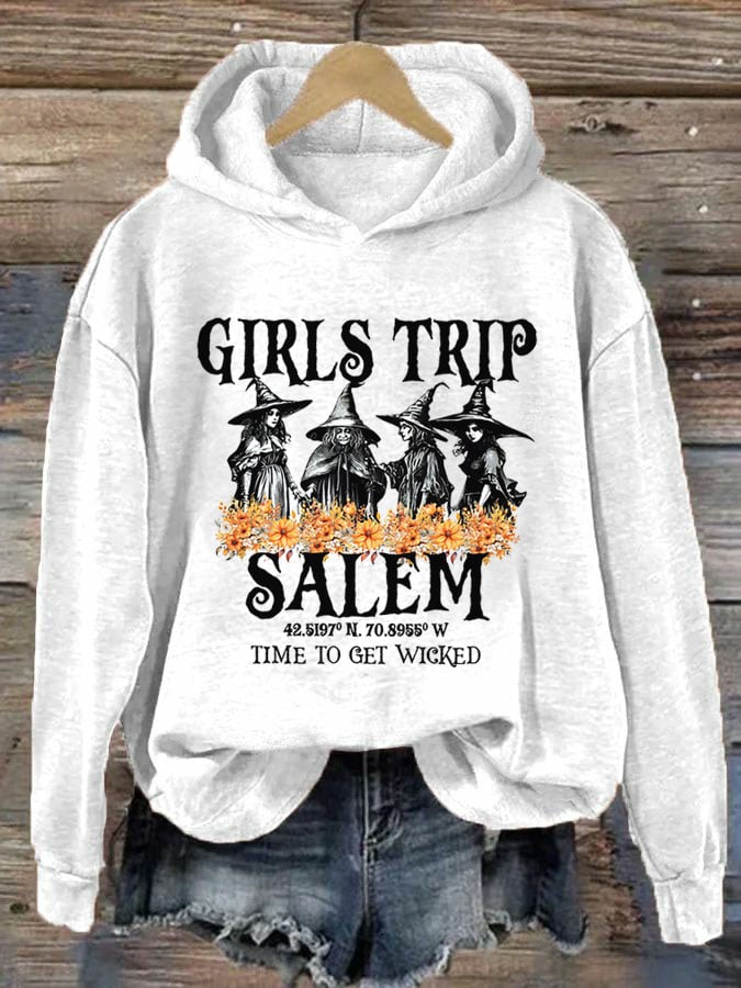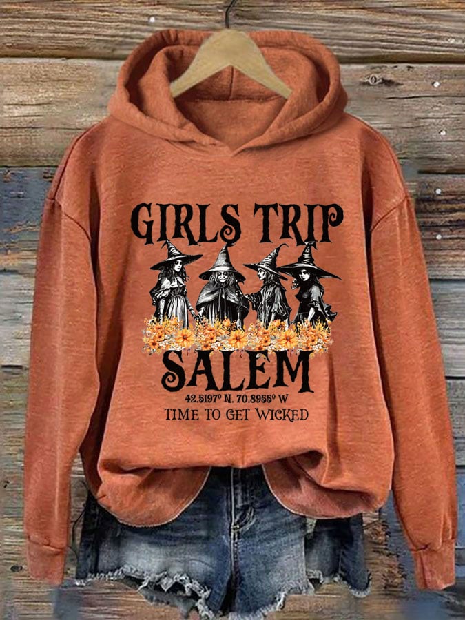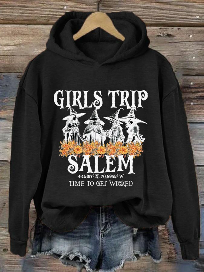 Women's Girl's Trip Salem Time To Get Wicked Halloween Print Hoodie