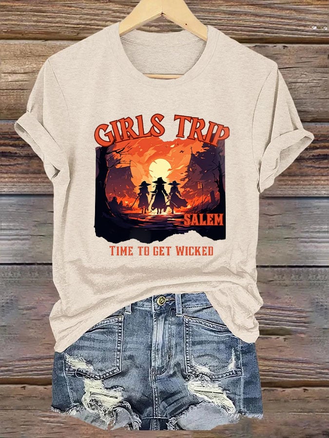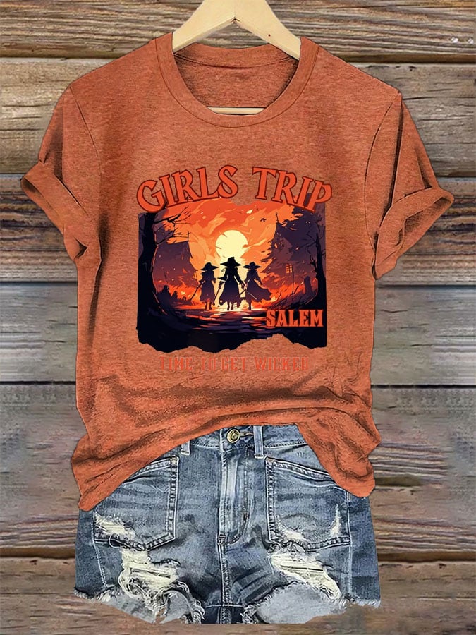 Women's Girl's Trip Salem Time To Get Wicked Halloween Printed T-Shirt