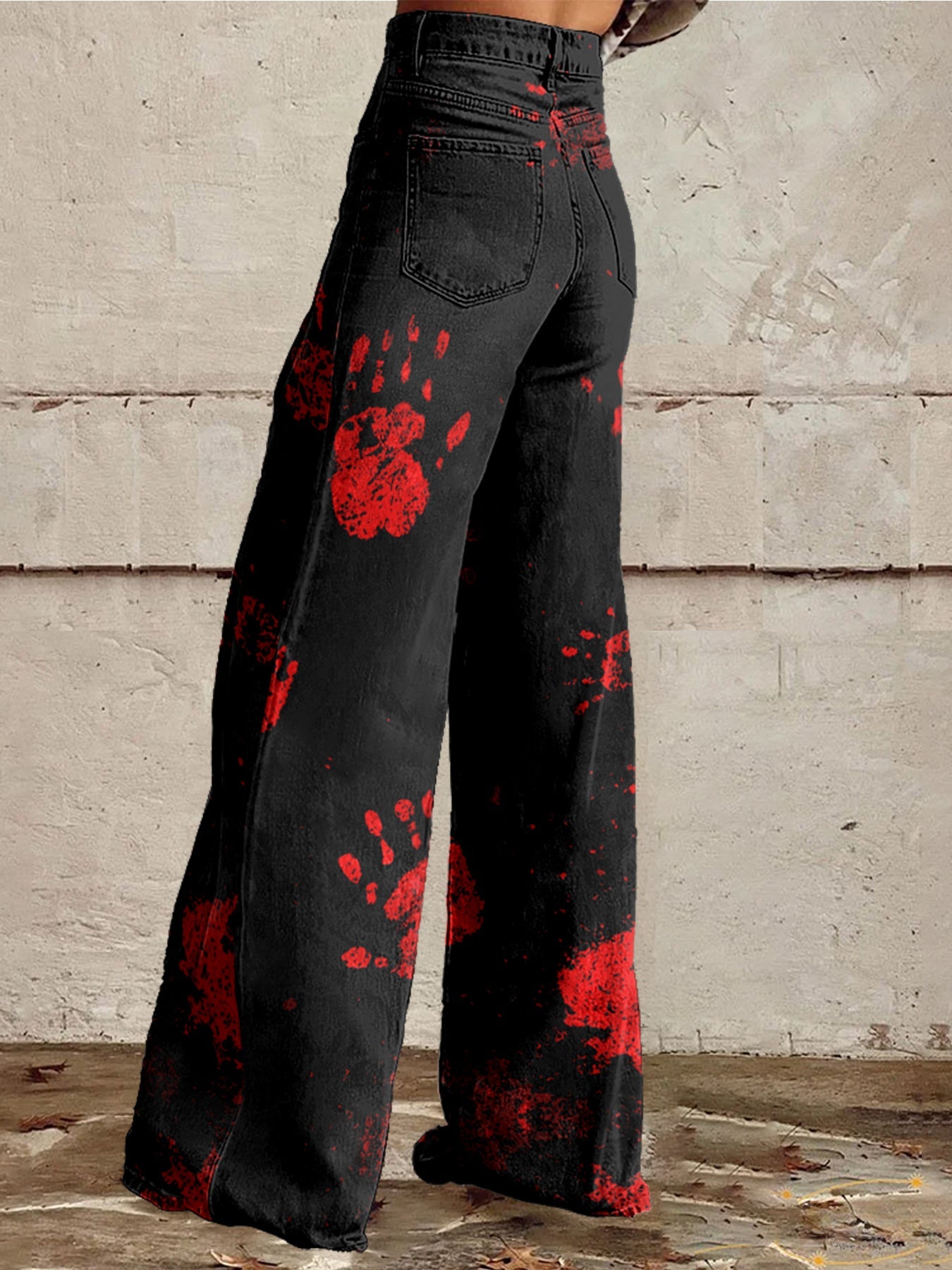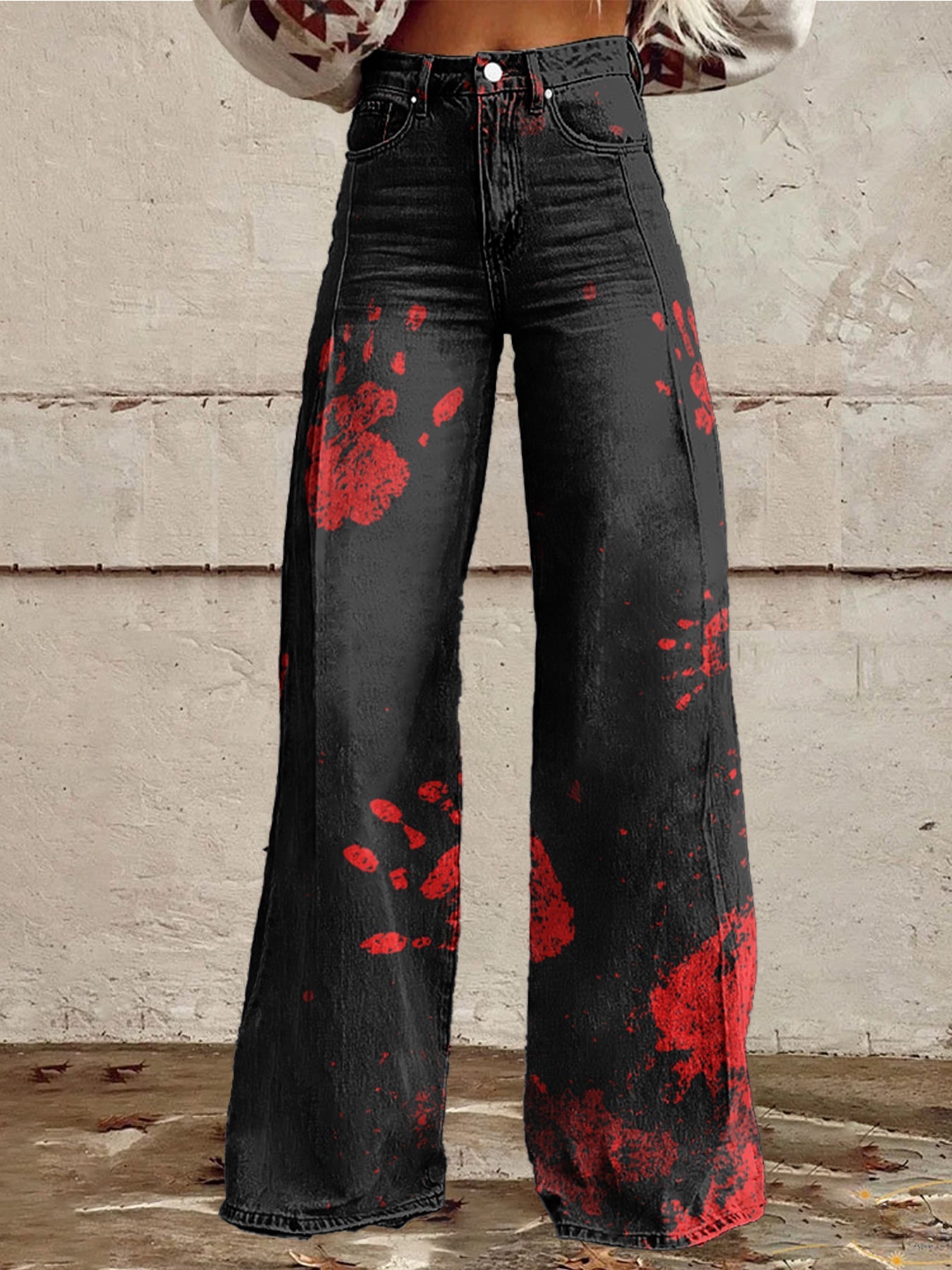 Women's Hallloween Spooky Cotton Flared Jeans Pants