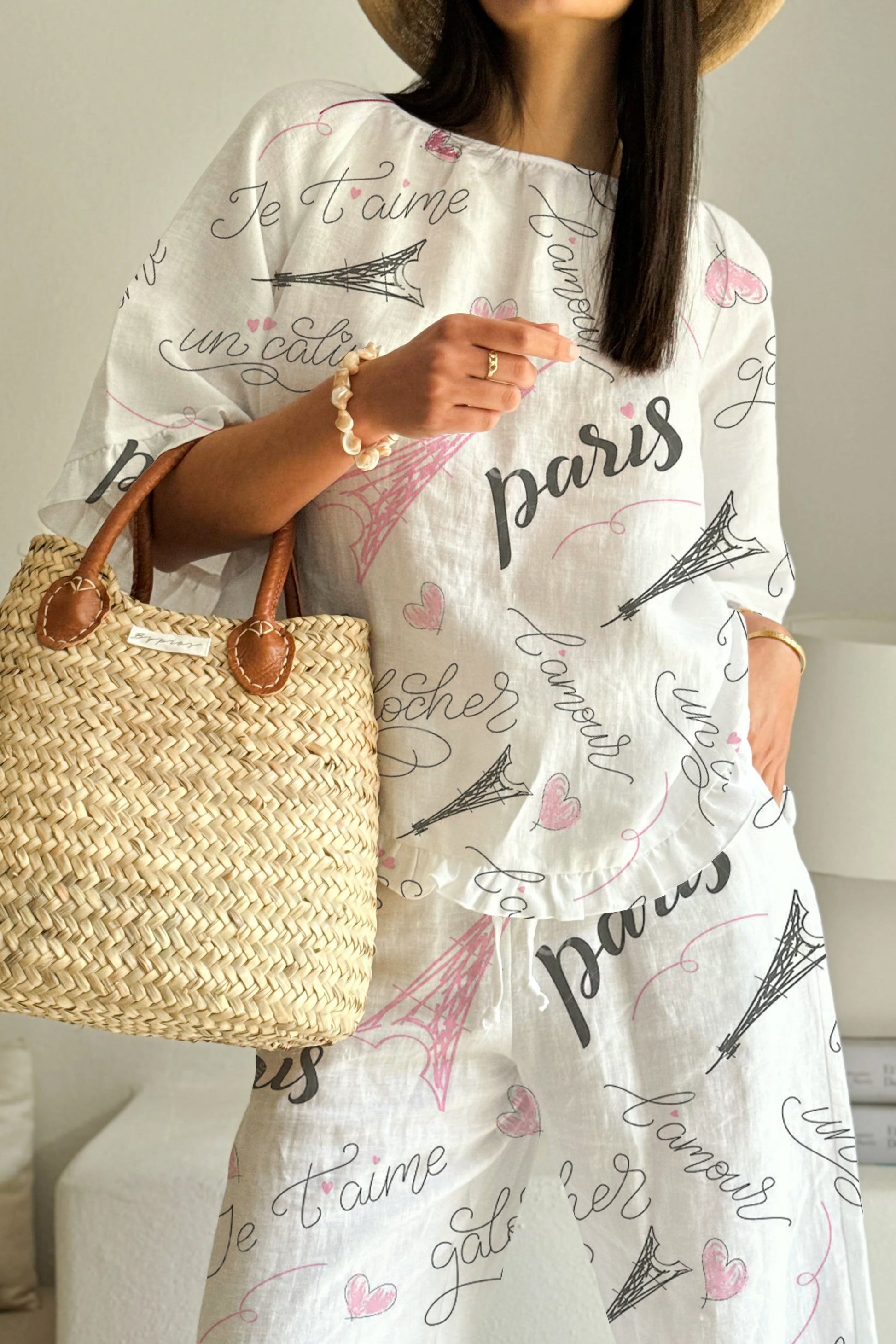 Women's Ruffled Romantic Paris Printed Pajama Set
