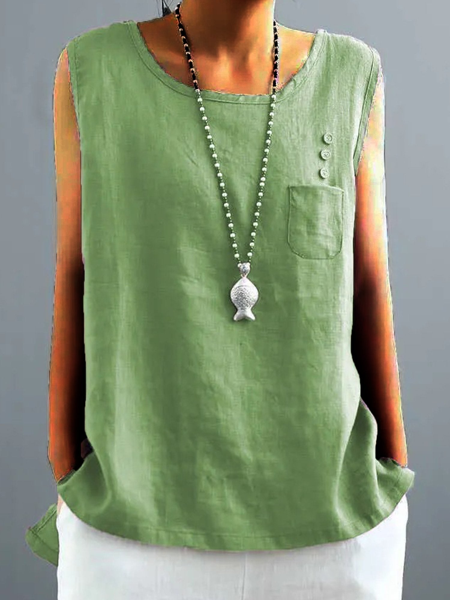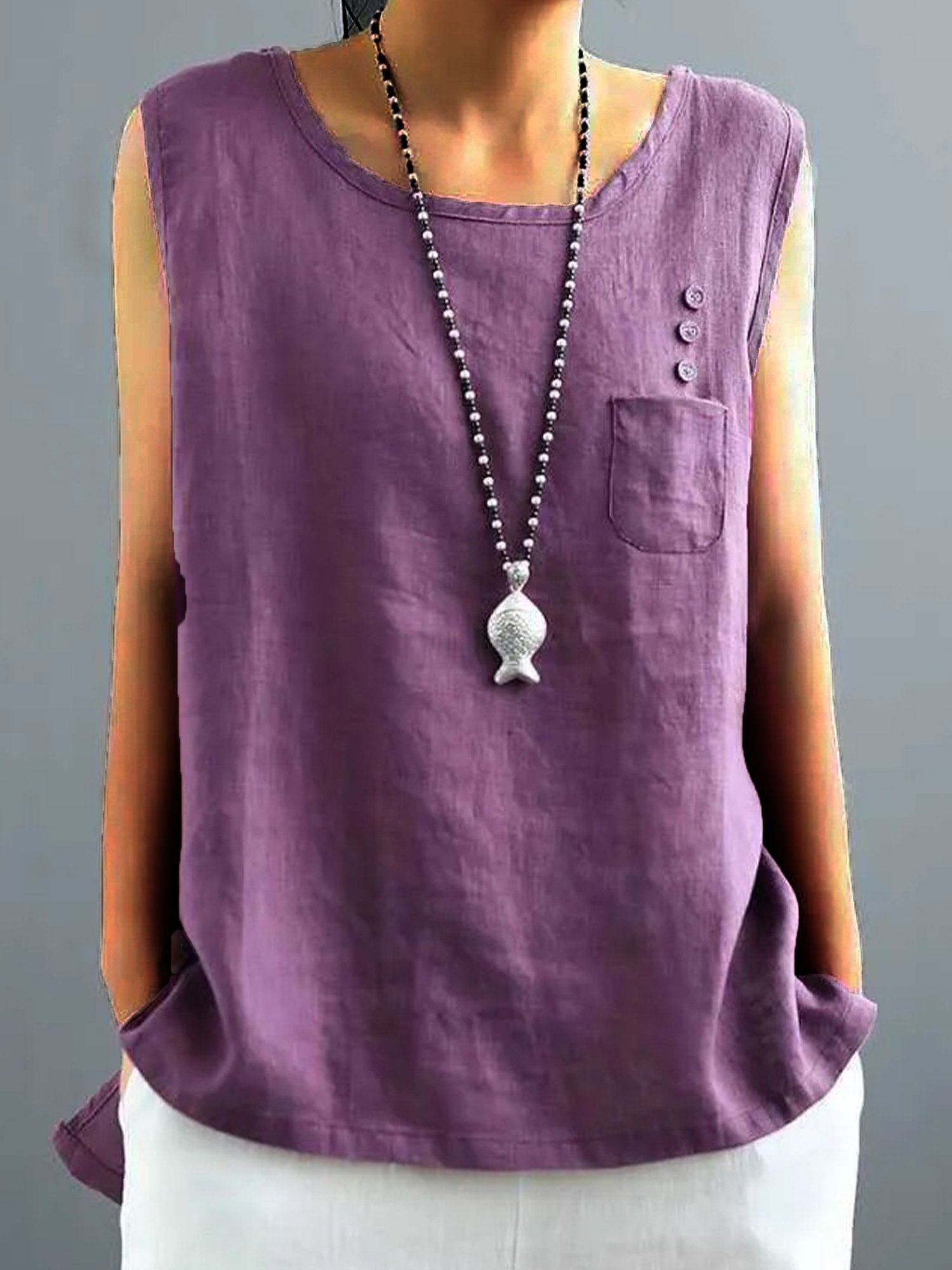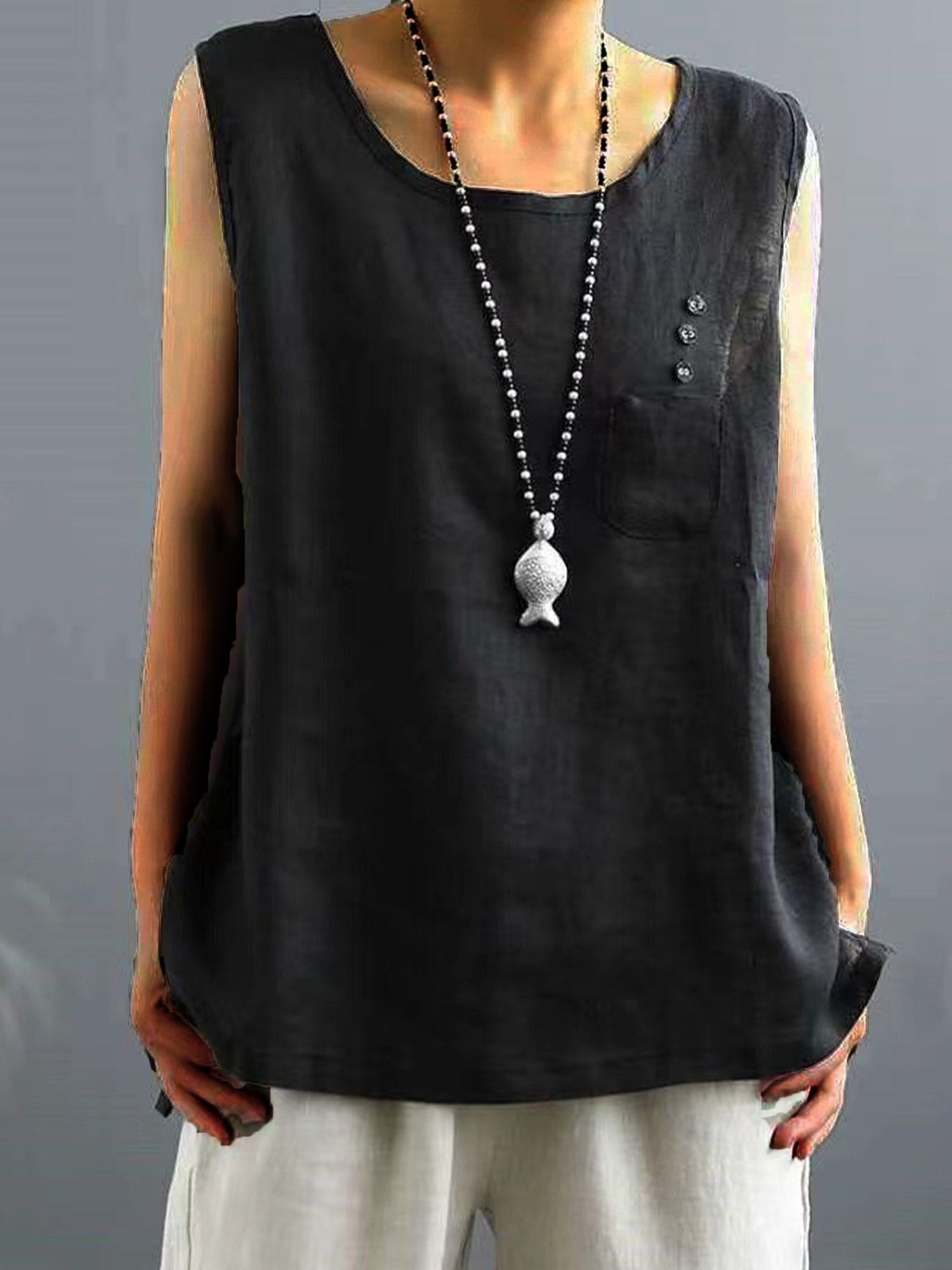 Women's Vintage Cotton Linen Solid Loose T-shirt