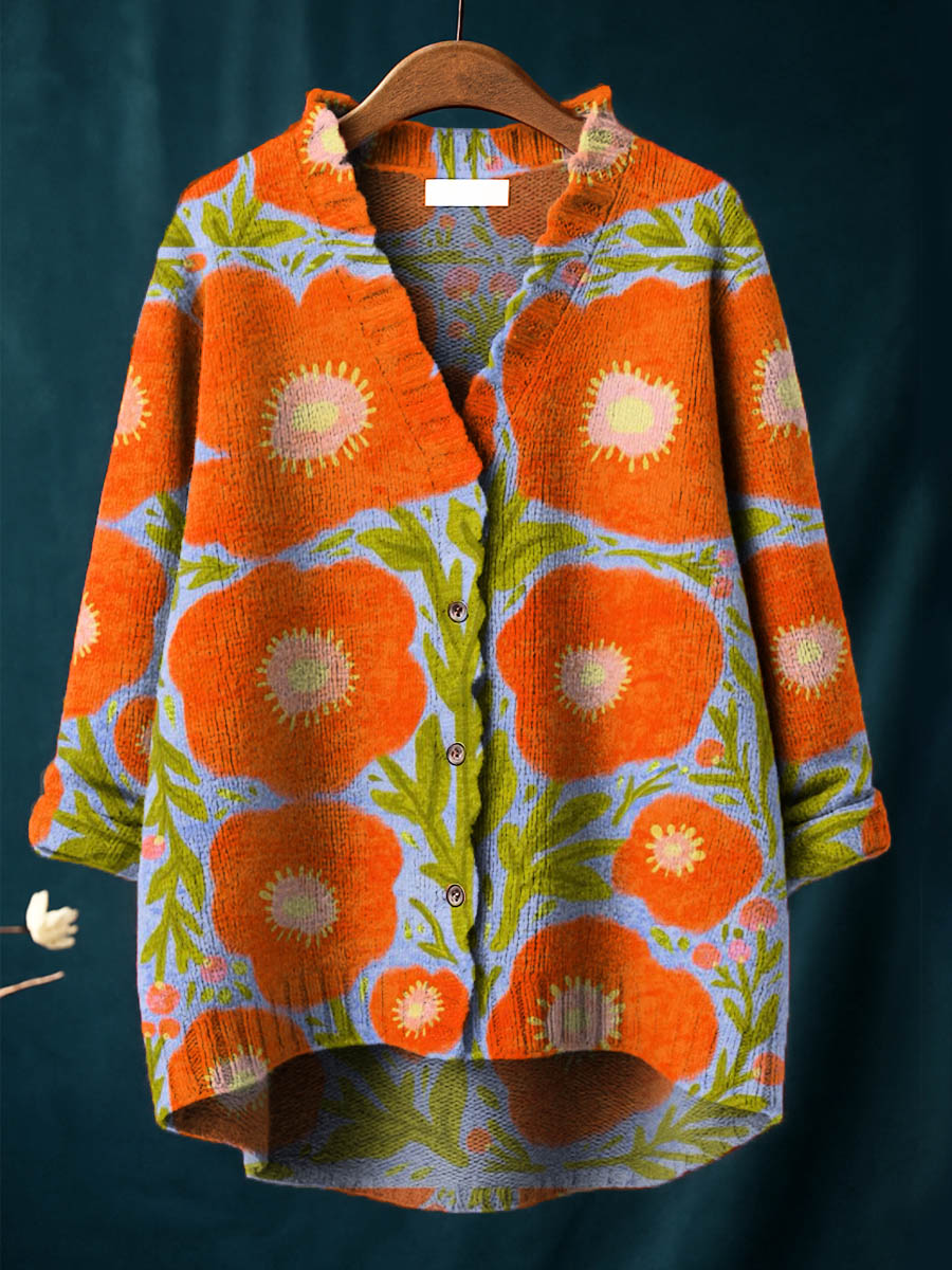 Women's Vintage Floral Art Print Casual Pullover Sweater